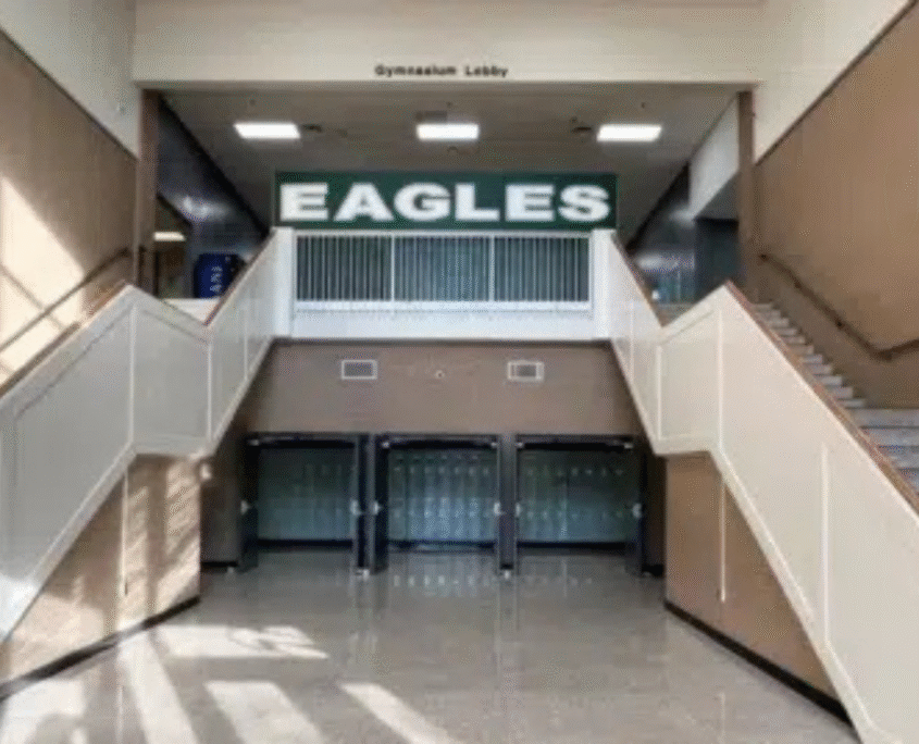 The renovation featured new ceilings, lighting fixtures, electrical upgrades, plumbing upgrades, cabinet replacements, HVAC grille replacements, and new flooring to improve the school’s interior environment.